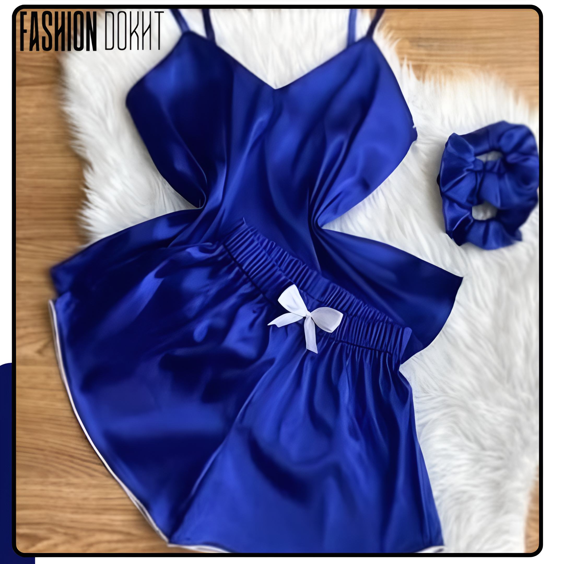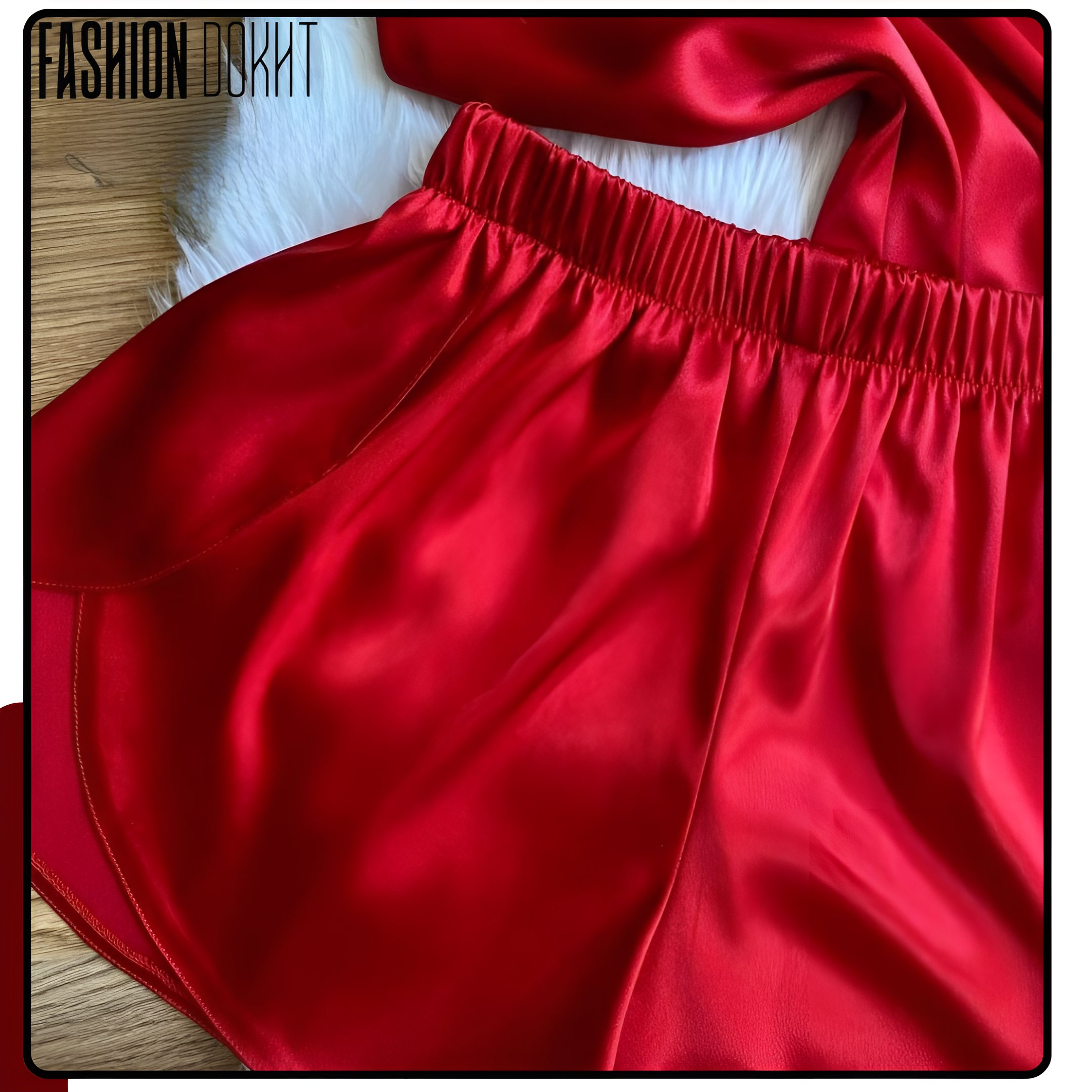 این ست زیبا با عشق و دقت در خانه توسط خودمان برای شما عزیزان دوخته میشود. امکان تغییر رنگ و سایز بر اساس سلیقه شما فراهم است تا کاملاً مناسب شما باشد. جنس این کار از ساتن LX درجه یک با گرمای بالا است که بسیار لطیف و راحت است. همچنین، مغزی سفید در پایین شورتک کار شده که به جذابیت و زیبایی آن افزوده است.