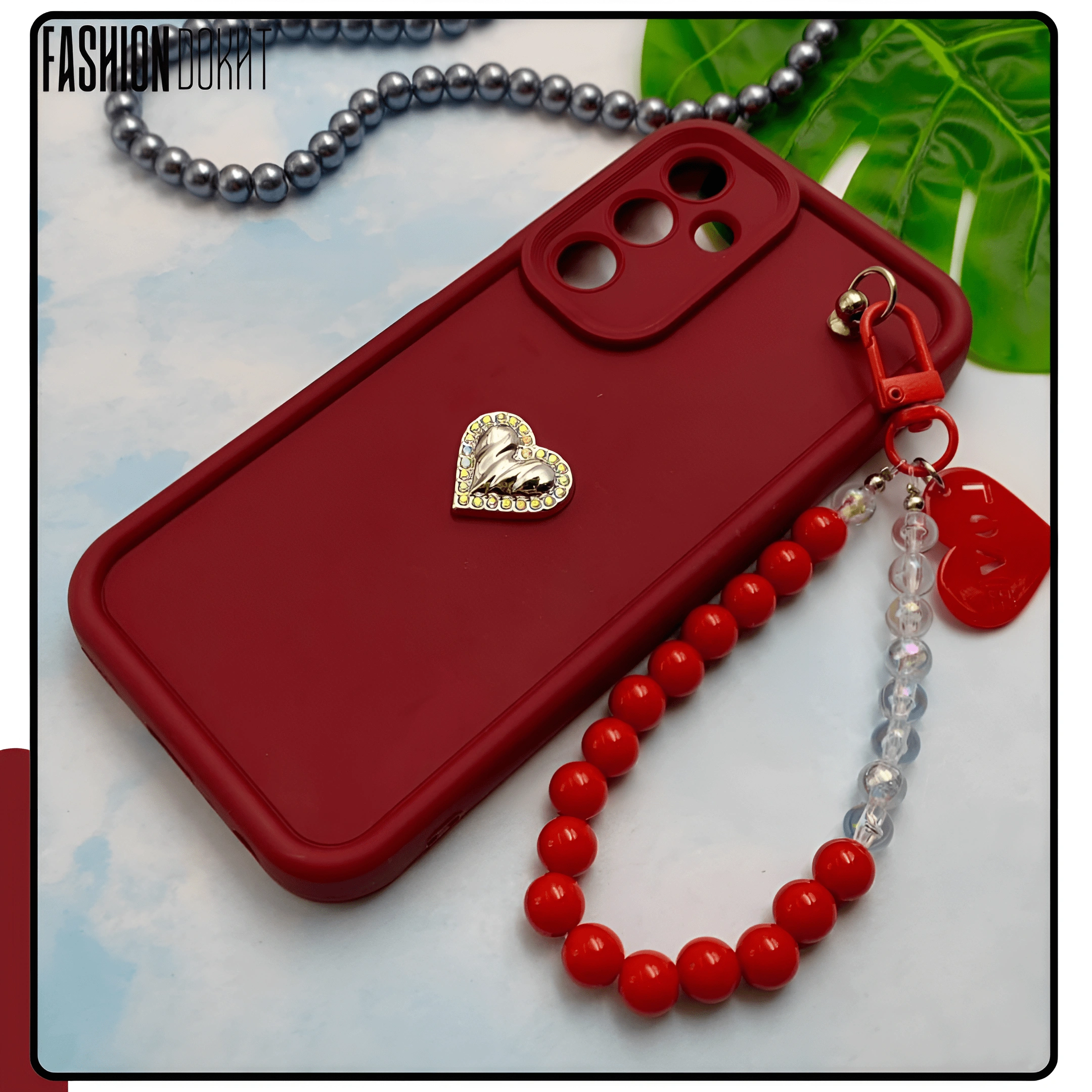 قاب گوشی Galaxy A25 سامسونگ Solid Case سیلیکونی مرواریدی دستبندی قلبی جدا شونده