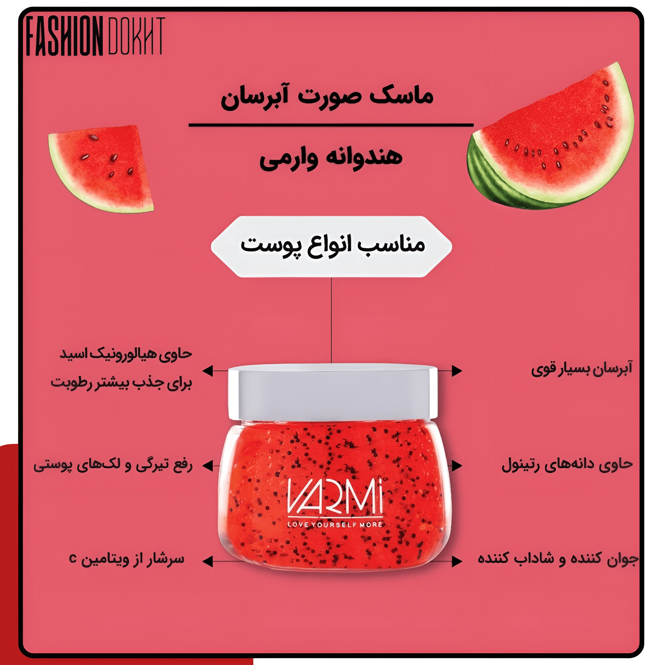 ماسک آبرسان هندوانه وارمی بهترین انتخاب برای افرادی است که به دنبال شادابی، آبرسانی و جوانسازی پوست خود هستند. این ماسک را میتوانید از فروشگاه اینترنتی فشن دخت با قیمت مناسب و تضمین اصالت کالا خریداری کنید.