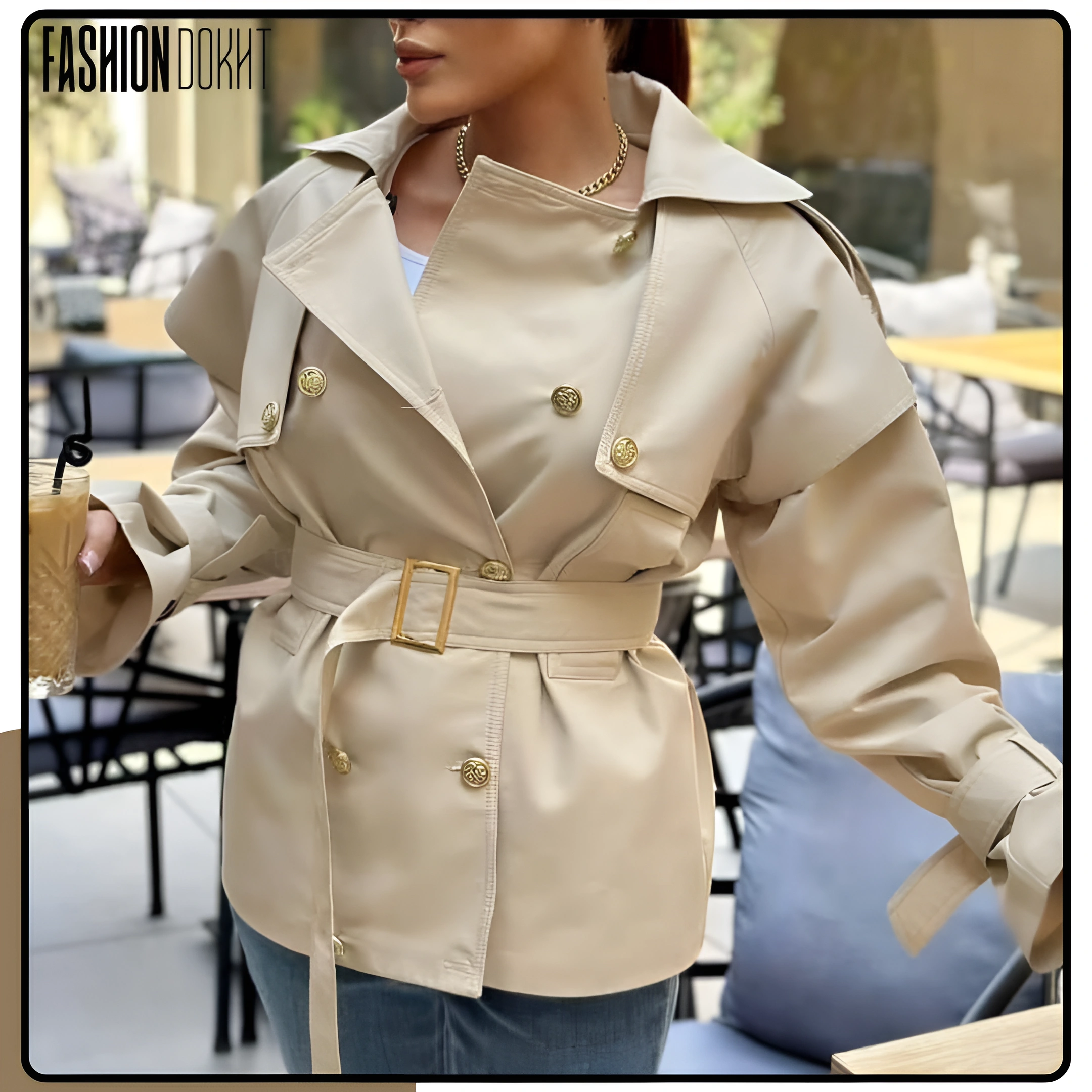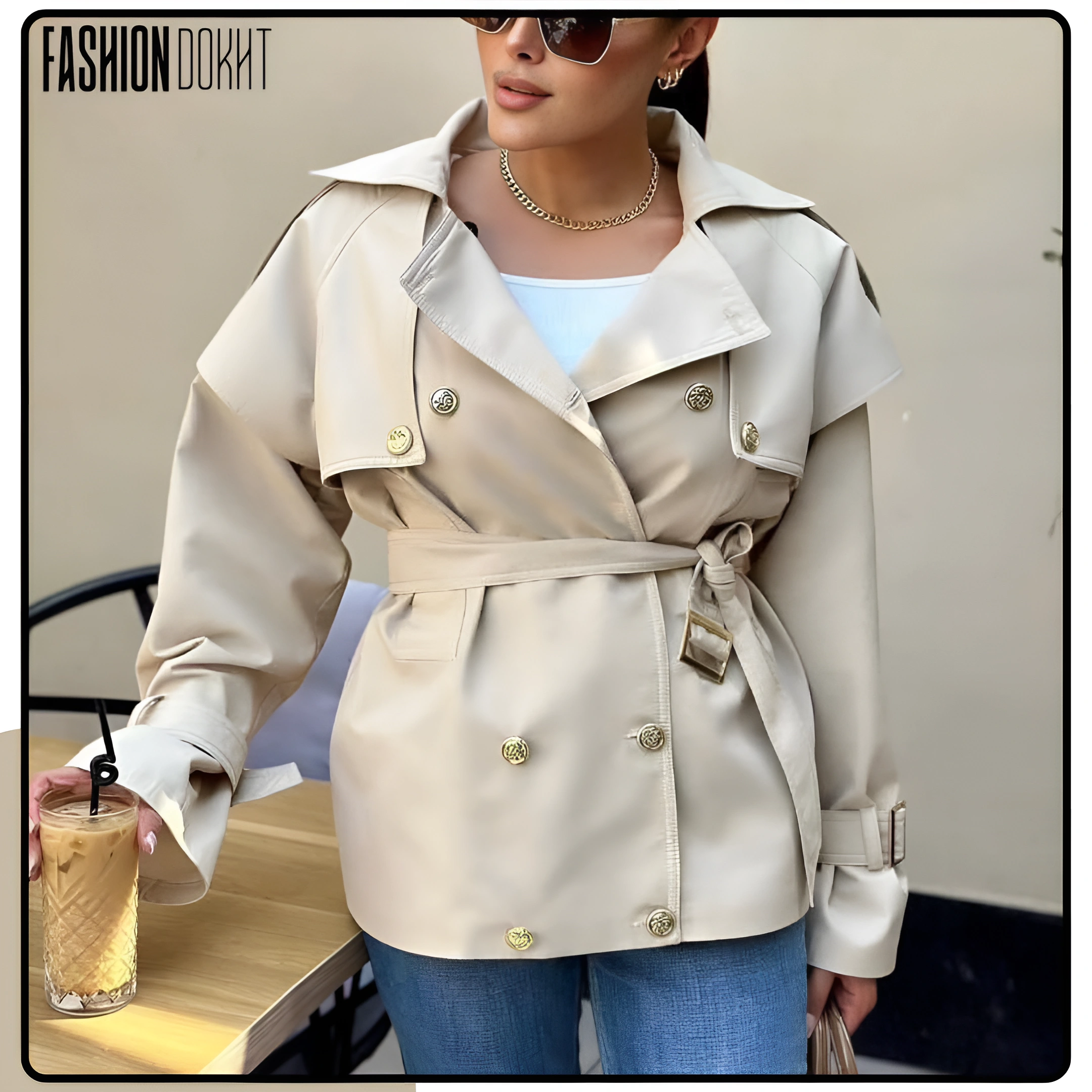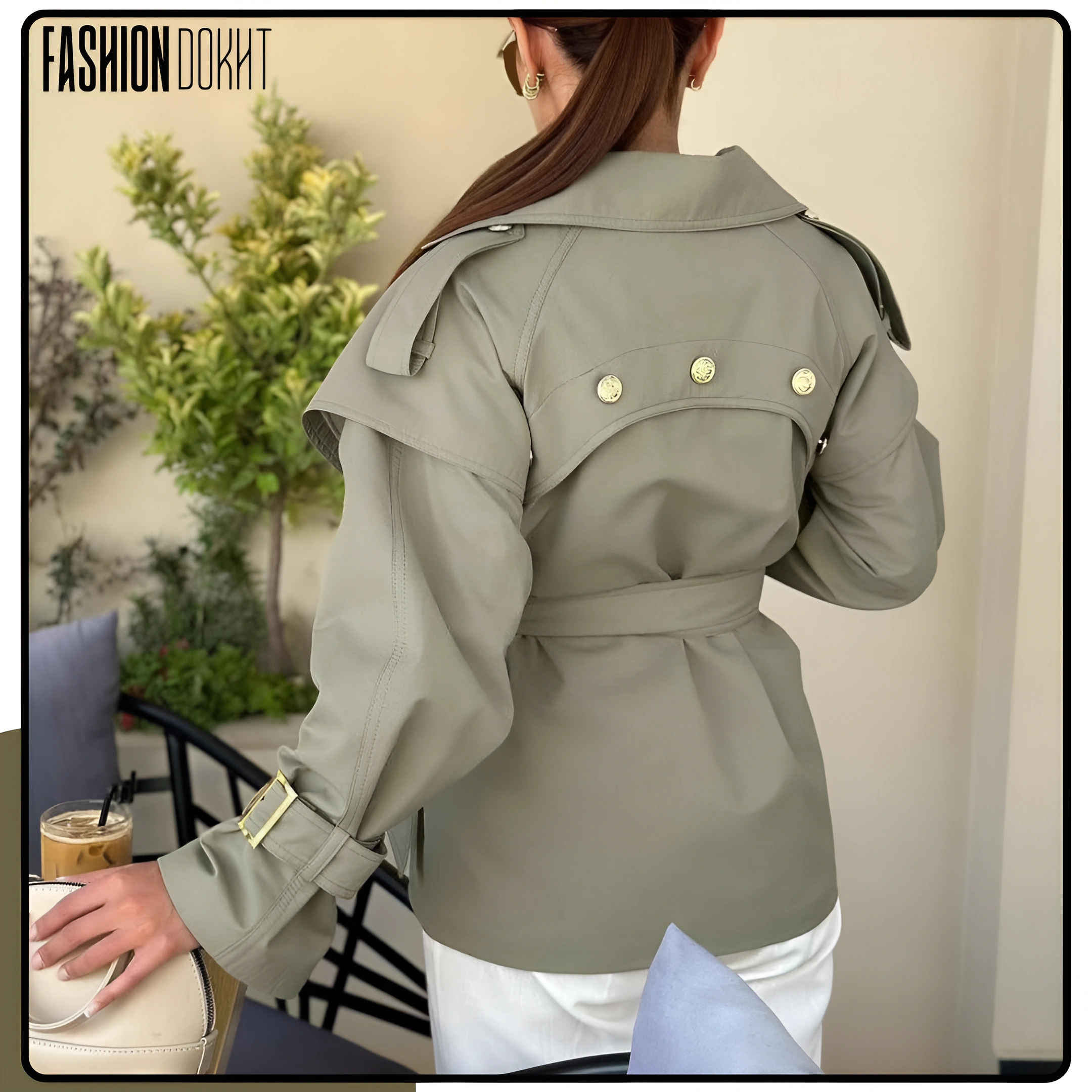 - جزئیات دوخت: دارای ۱۳ دکمه سلطنتی برای ایجاد ظاهری شیک و خاص، سگک در قسمت آستین و کمر که قابل تنظیم است و یک ظاهر منحصر به فرد به بارانی میدهد.