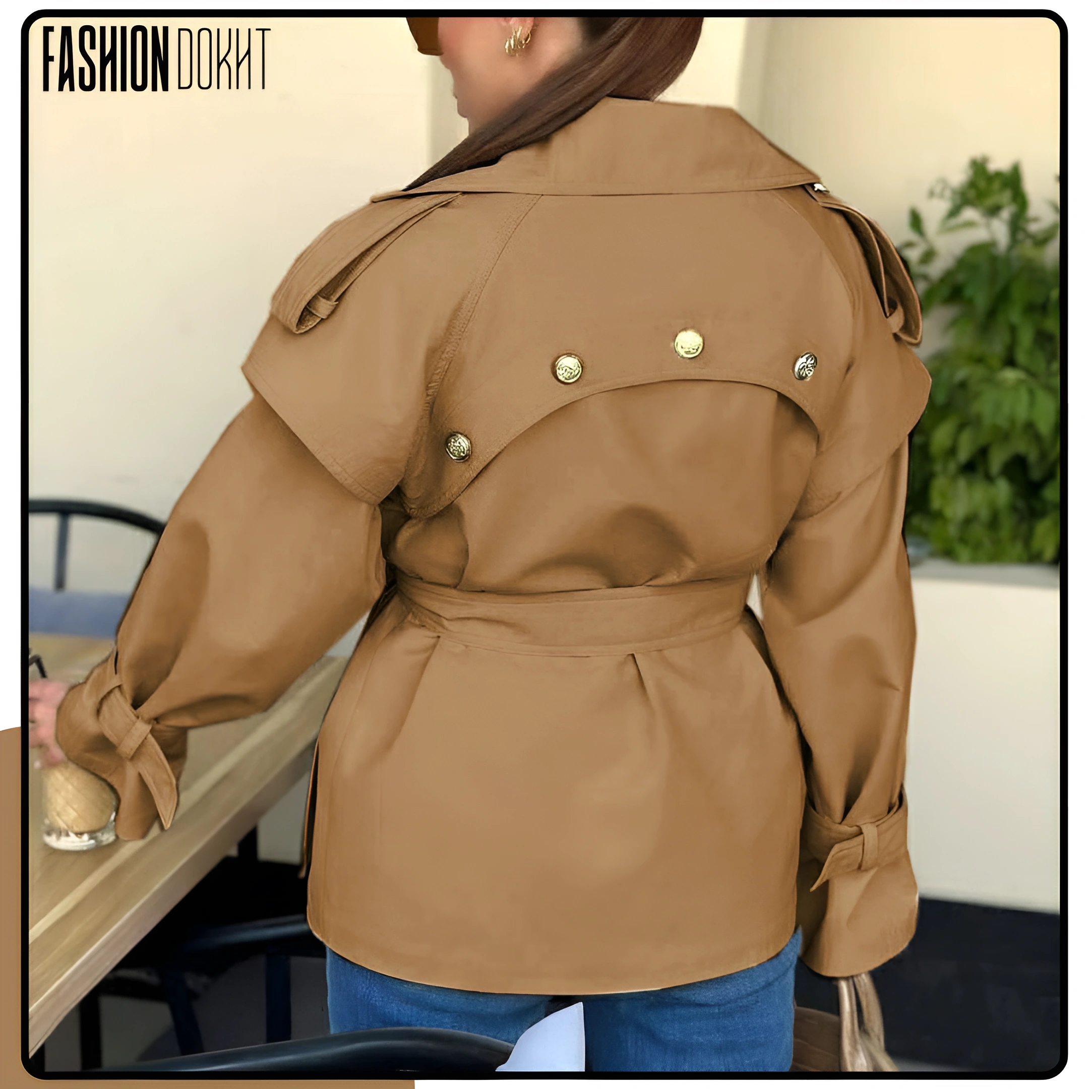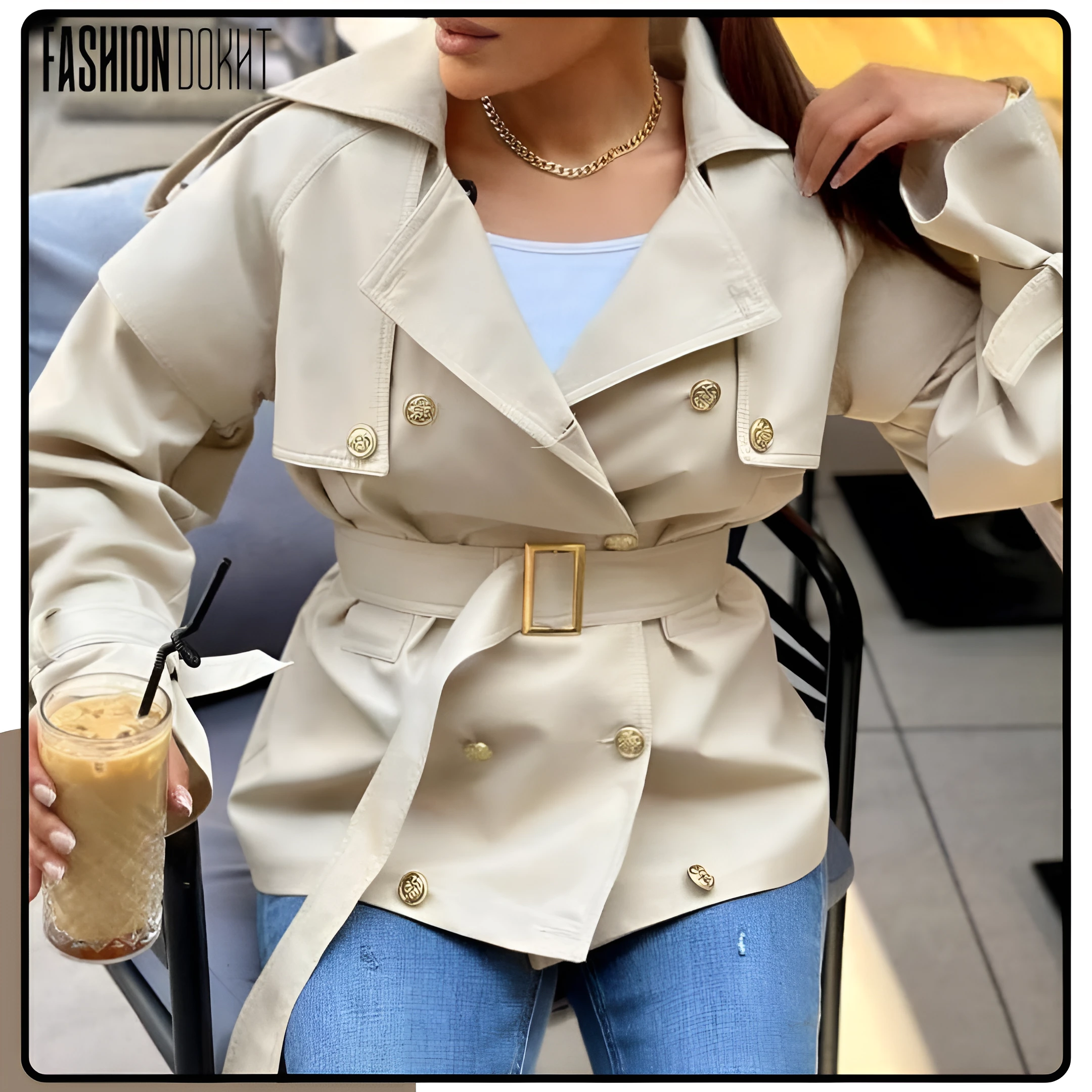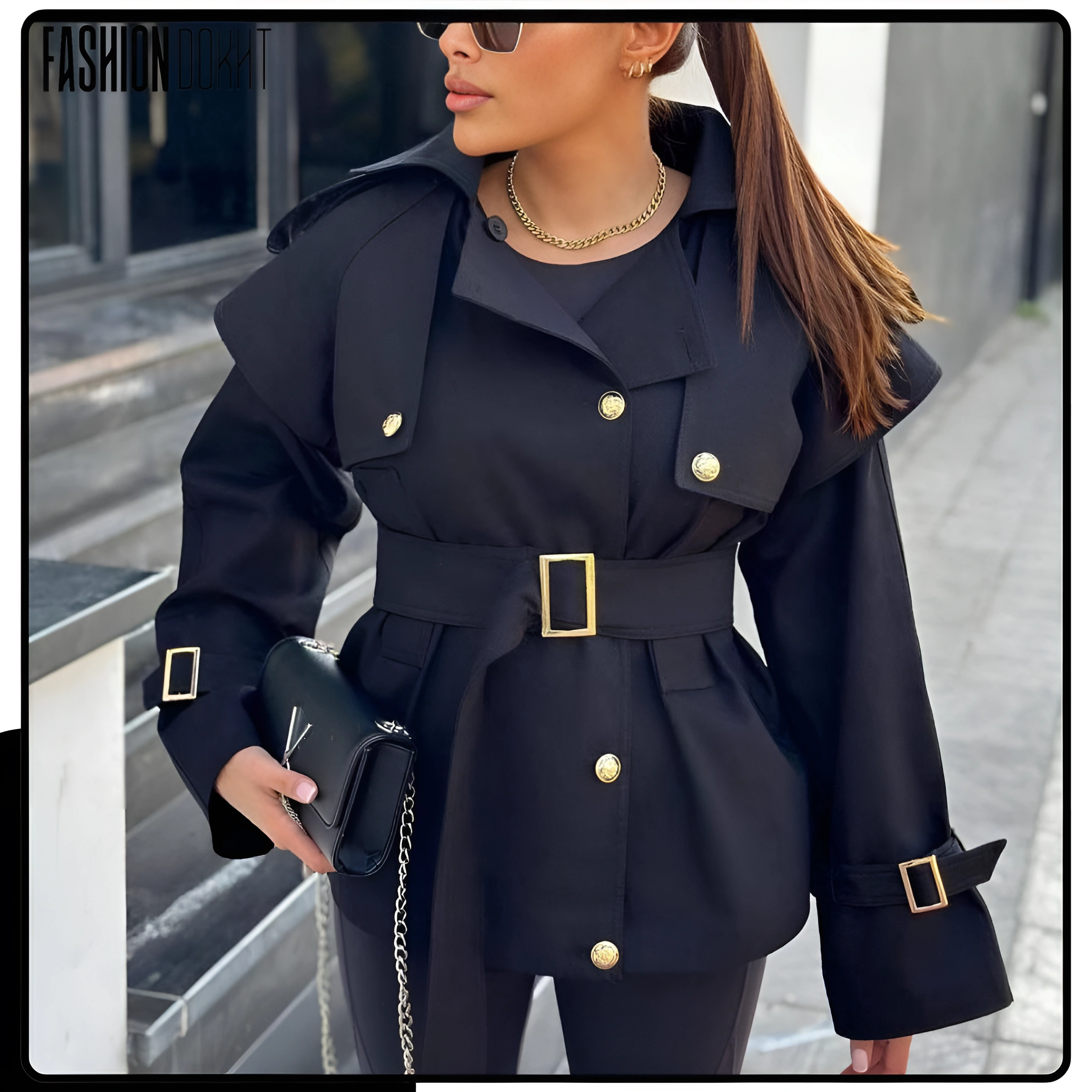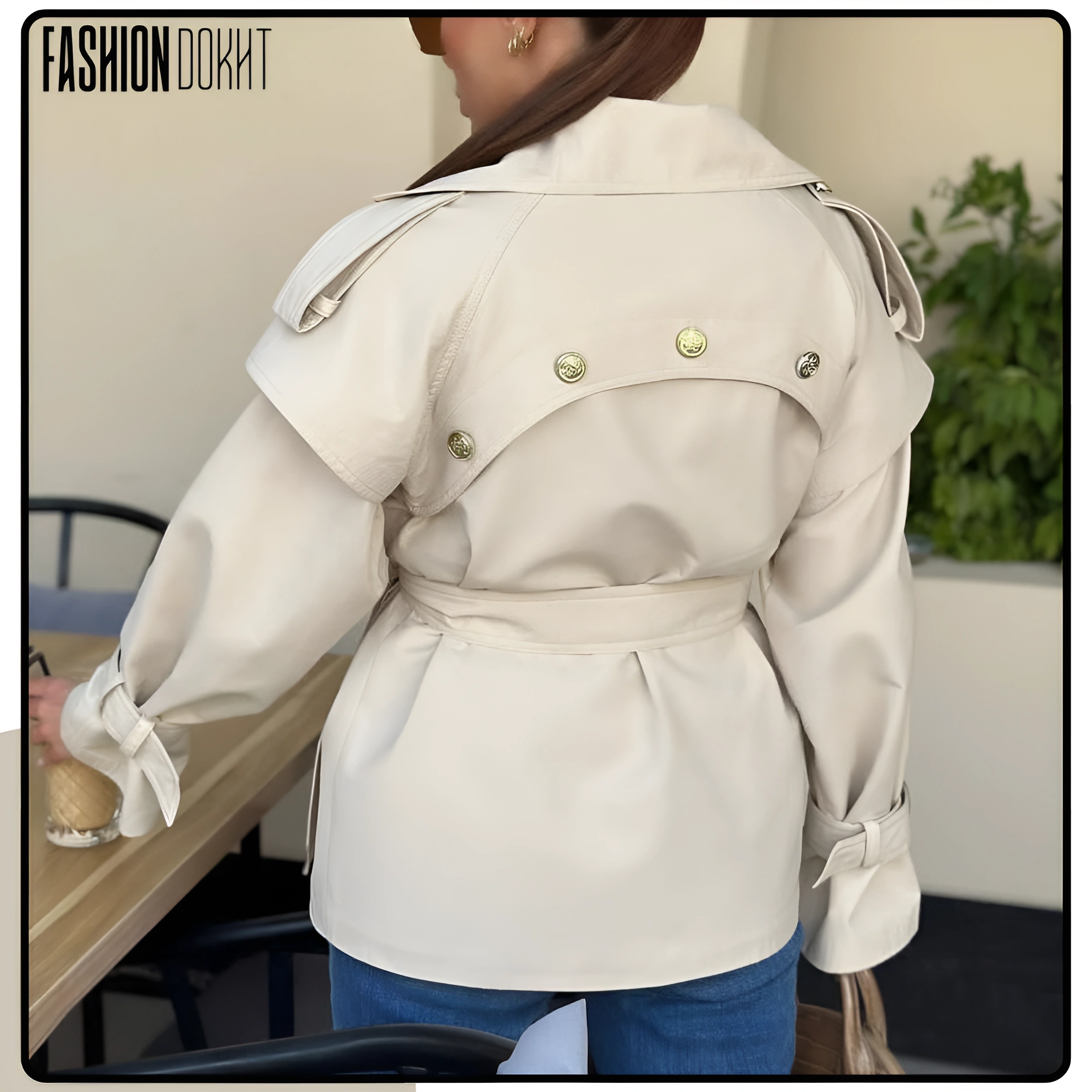 - جزئیات دوخت: دارای ۱۳ دکمه سلطنتی برای ایجاد ظاهری شیک و خاص، سگک در قسمت آستین و کمر که قابل تنظیم است و یک ظاهر منحصر به فرد به بارانی میدهد.