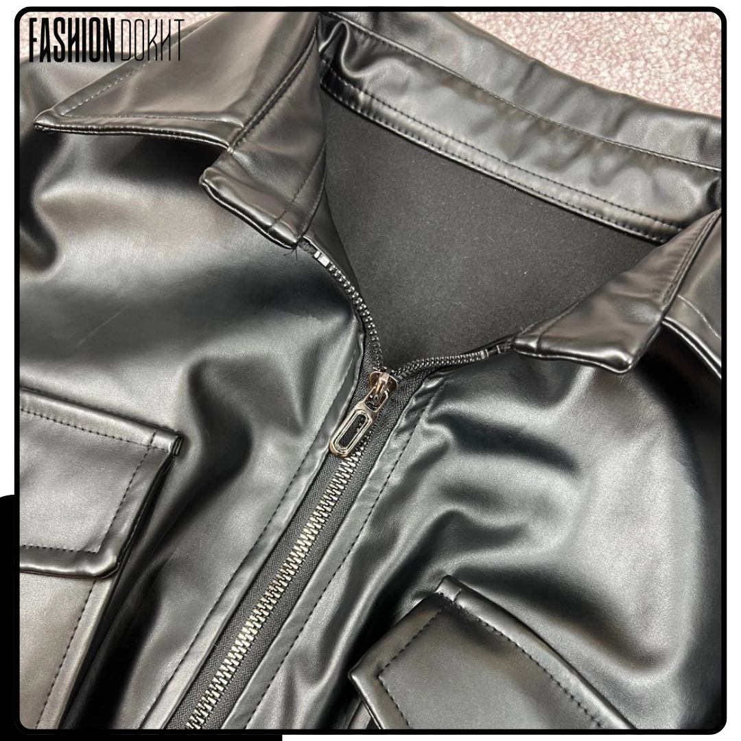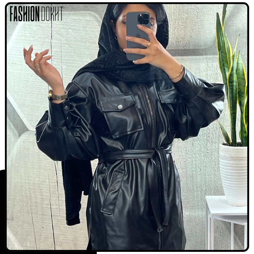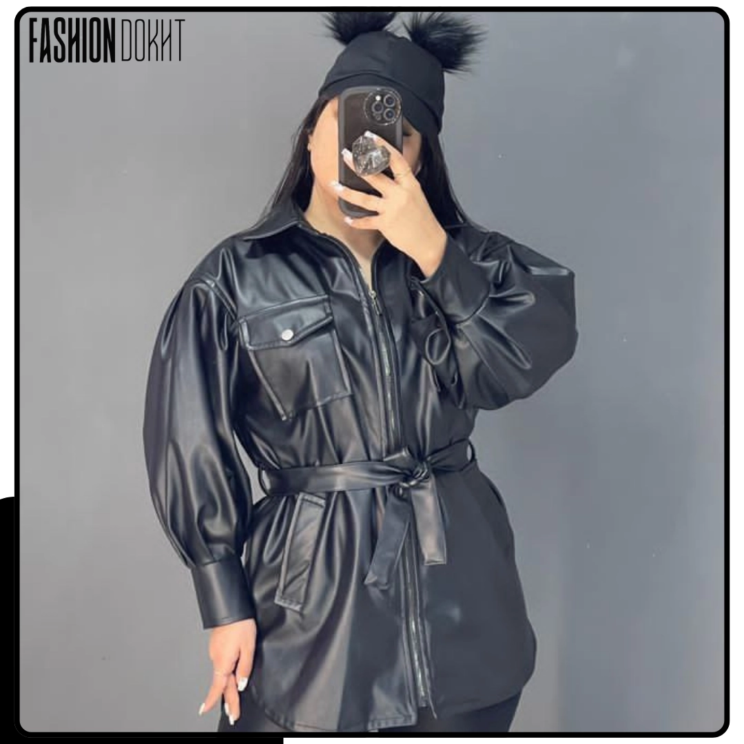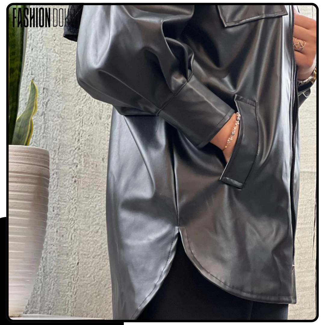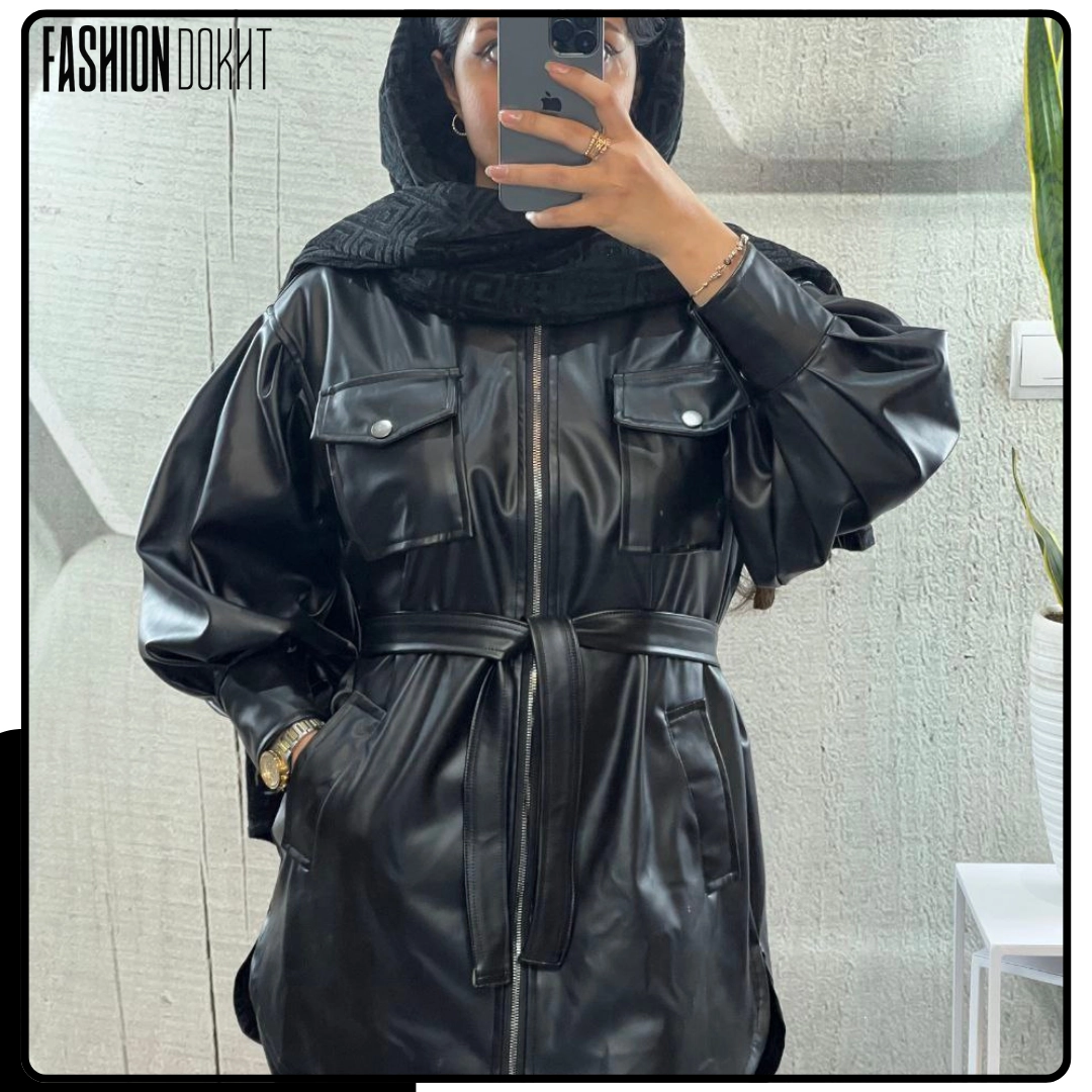 مانتو چرم آستین پفی مدل مانلی از کالکشن پاییزه