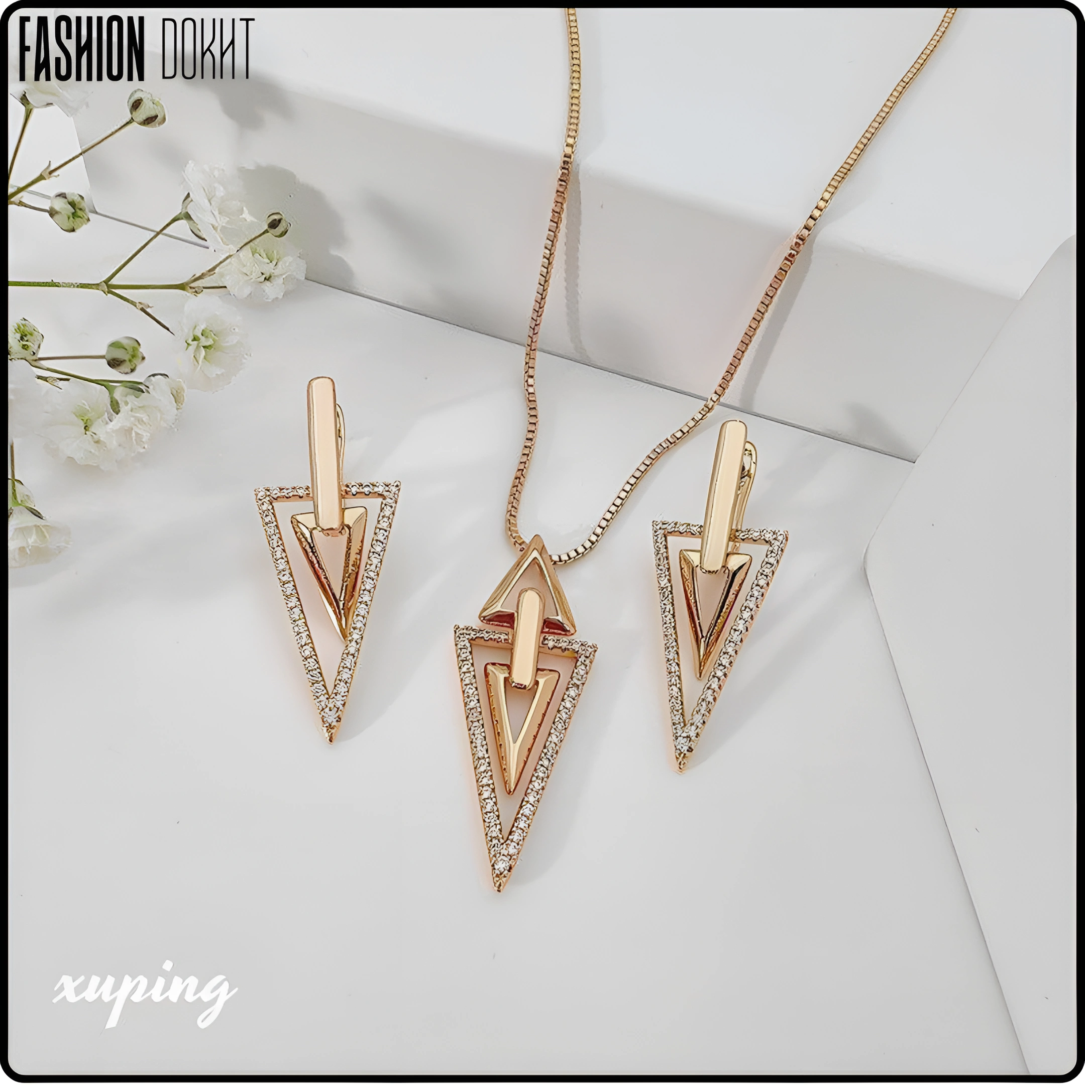 نیم ست مثلثی نگین دار - برند ژوپینگ Xuping