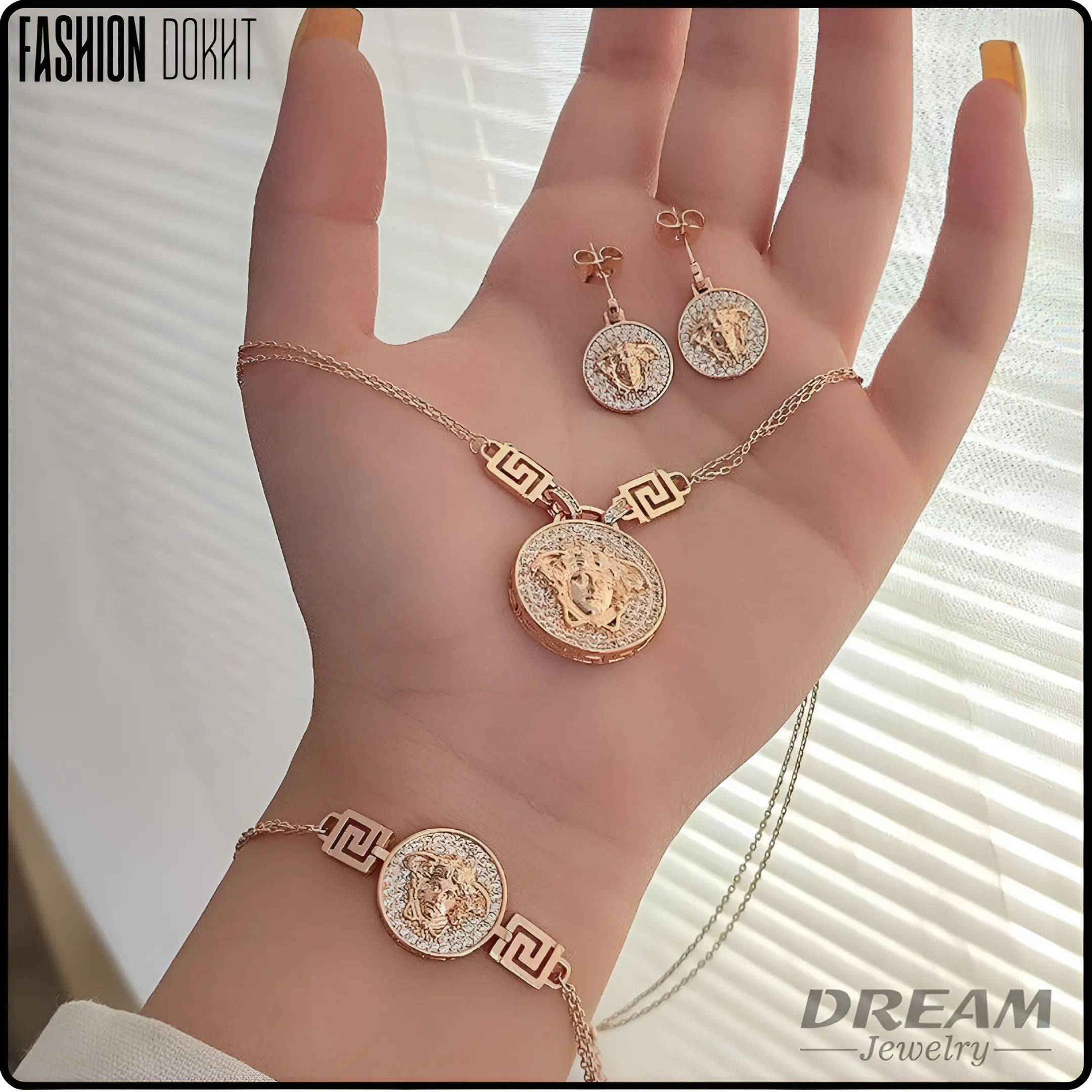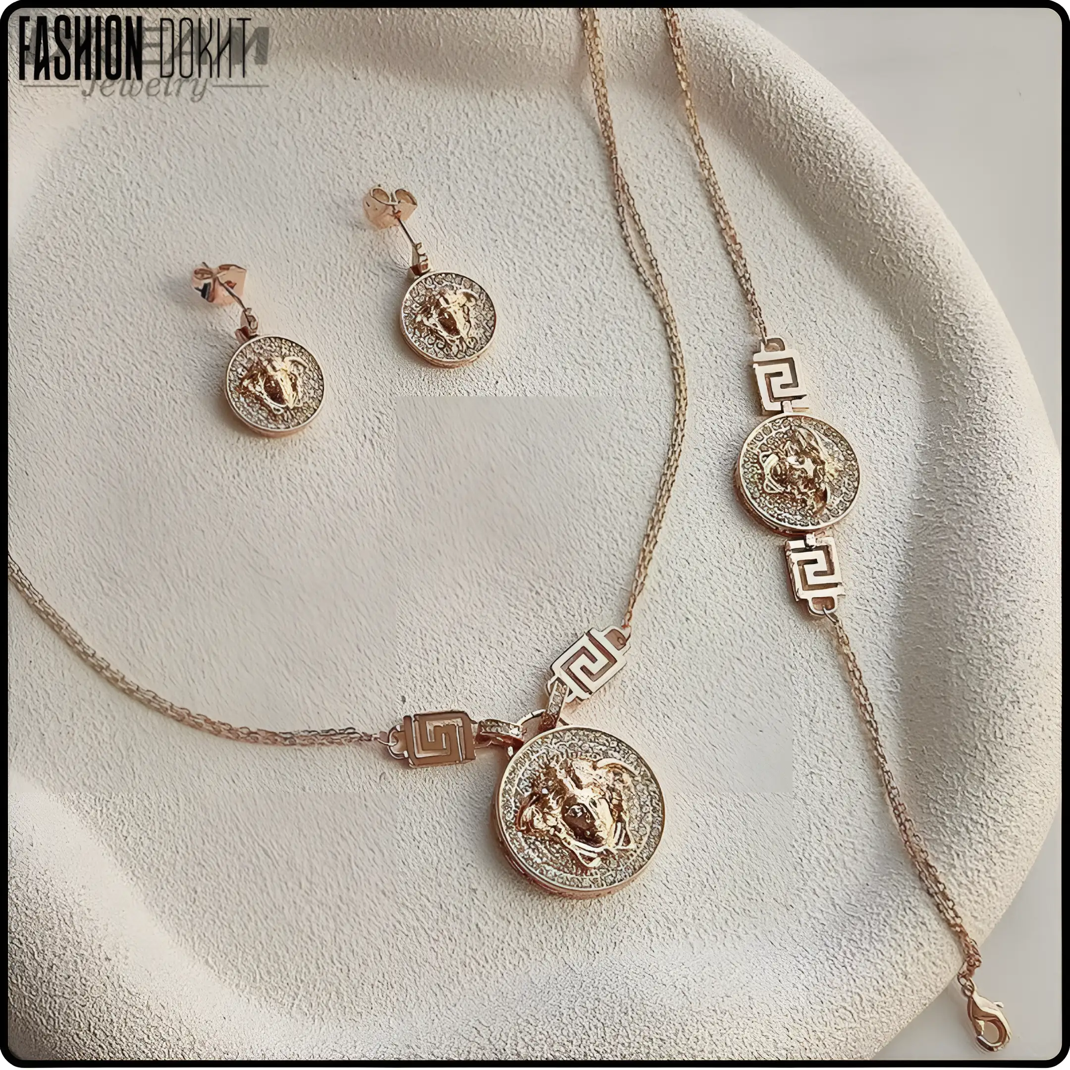 سرویس ورساچه نگیندار از برند DREAM، با الهام از مدلهای محبوب طلا، ترکیبی از زیبایی و کیفیت است. این سرویس شامل گردنبندی به طول 40 سانتیمتر (قابل افزایش تا 45 سانت) و دستبندی با طول 17 سانتیمتر (قابل افزایش تا 22 سانت) میباشد.