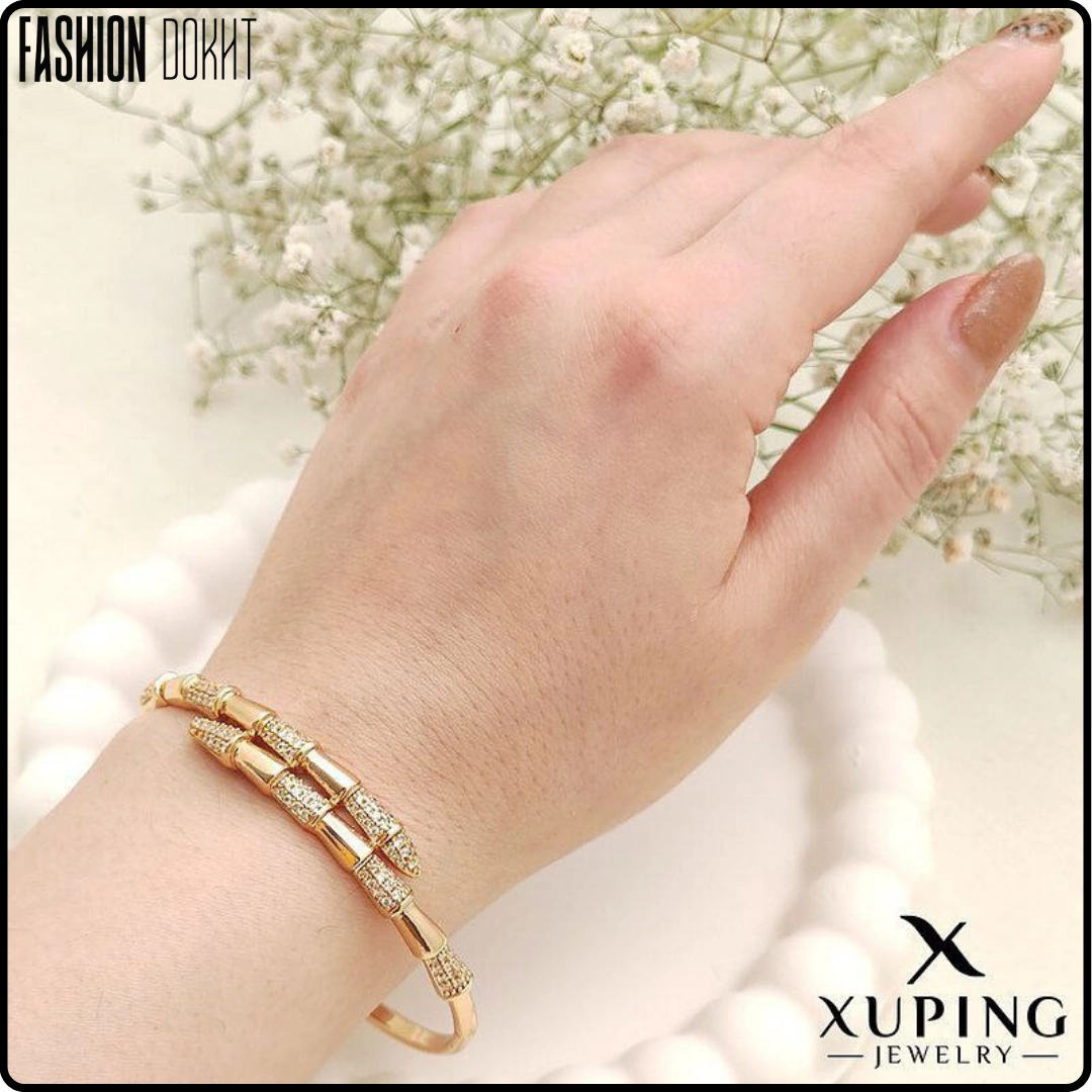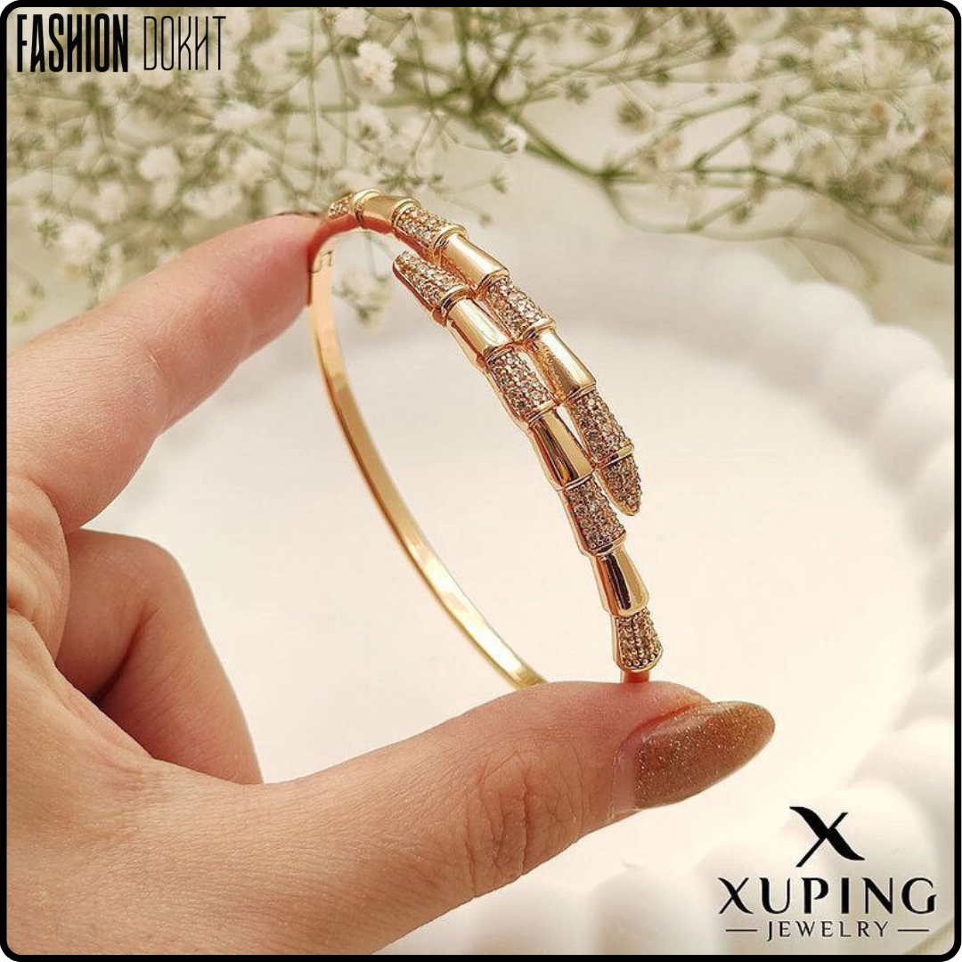 دستبند تکدست بولگاری نگیندار | تاجی برای مچ دست شما (طلاکوب چندلایه • نگینهای مخراجکاری • ضدحساسیت • برند ژوپینگ)