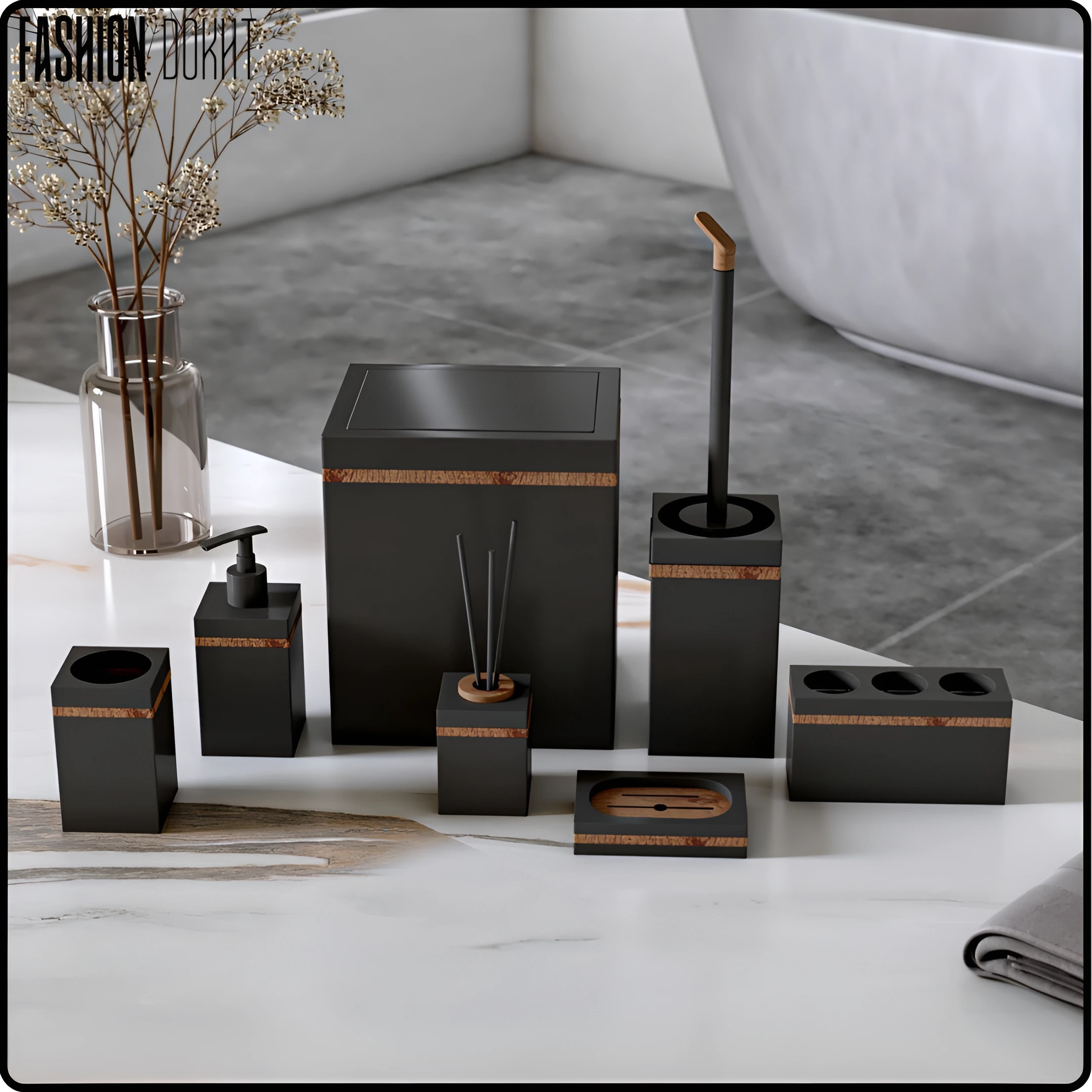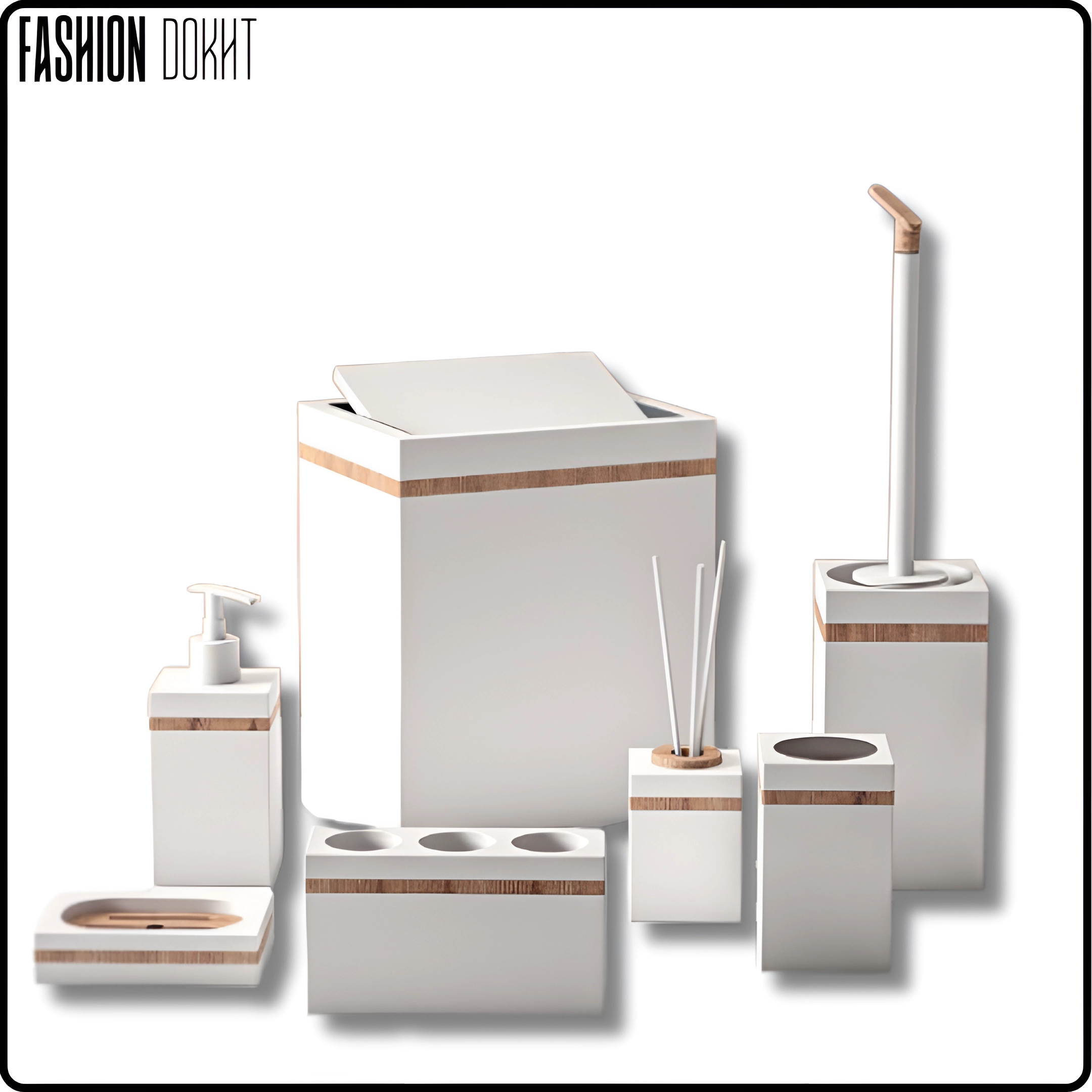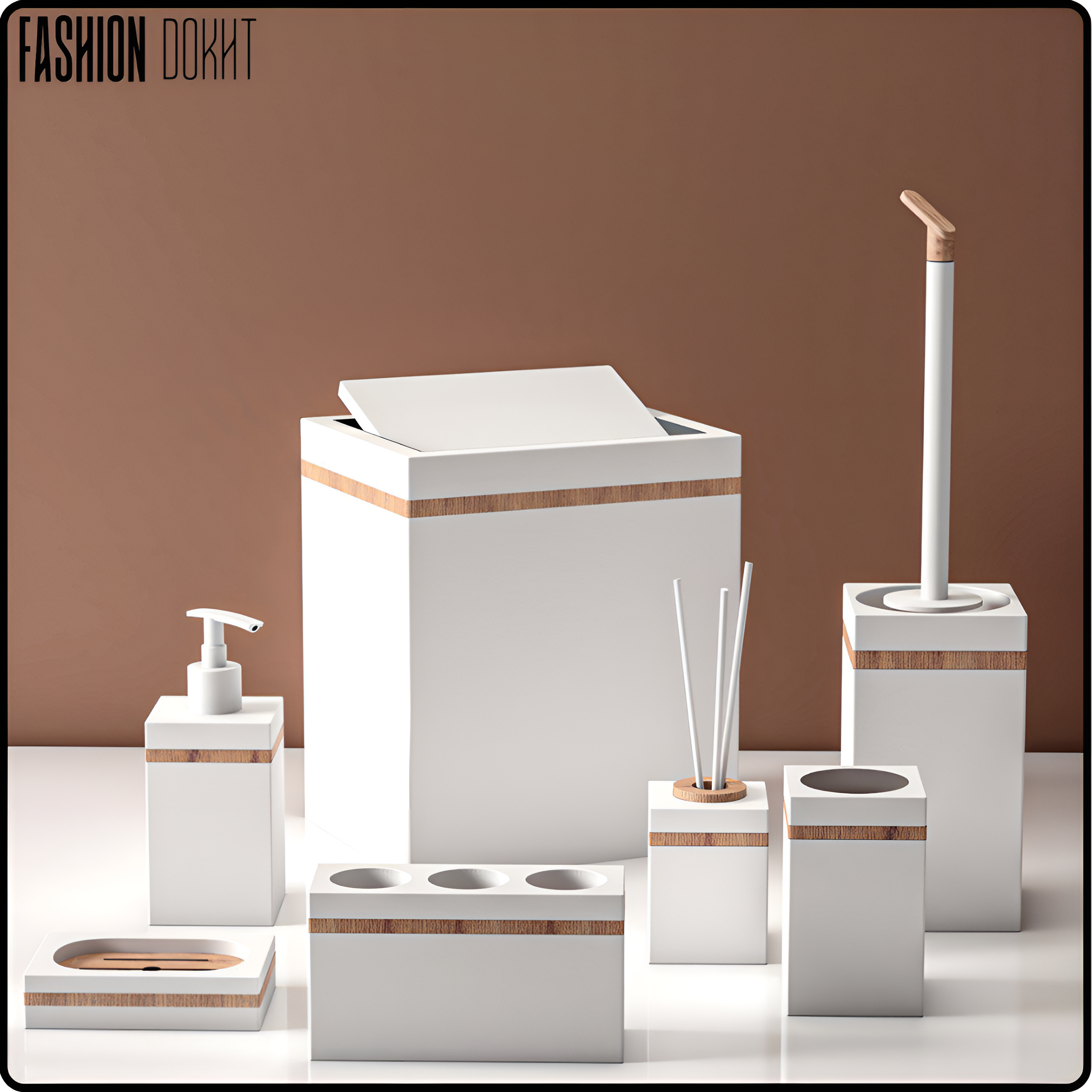وسایلسطل زباله، جا صابونی، جا مایع دستشویی، جا مسواکی، فرچه، خوشبو کننده جاعودی، جا کرم و مرطوب کننده