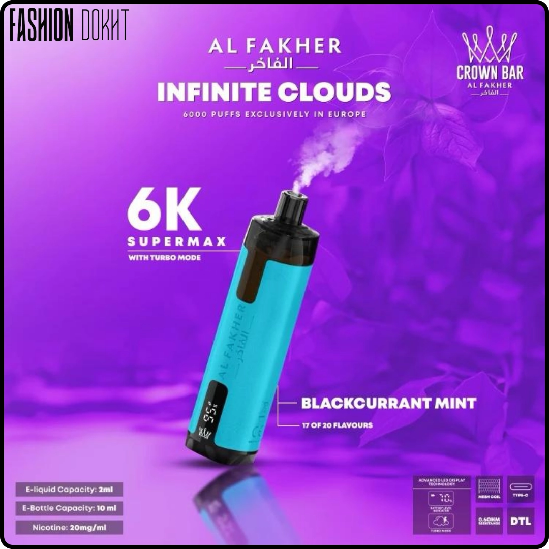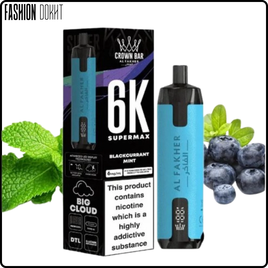 پاد یکبار مصرف 6000 پاف توت سیاه نعنا الفاخر(دود زیاد) Alfakher Blackcurrant Mint 6000 Puff.